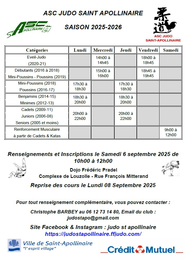 Cadets (2009-2010-2011), Juniors (2006-2007-2008), Séniors (2005 et moins)