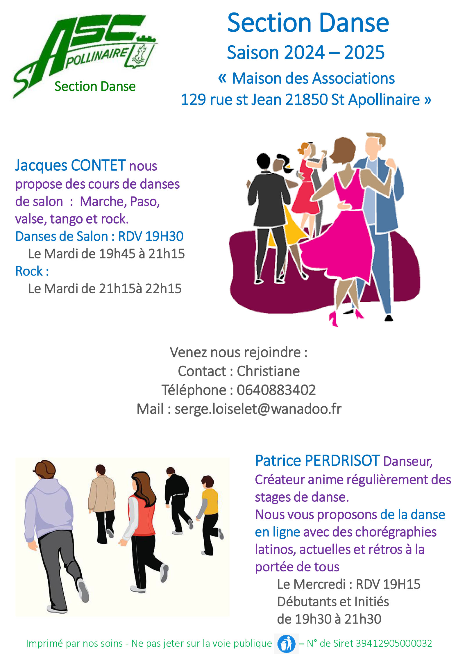 La reprise des cours de salon aura lieu le mardi 17 septembre 2024 de 19h 45 à 21h 15 et le rock de 21h 15 à 22h 15. avec Jacques CONTET l'animateur.
