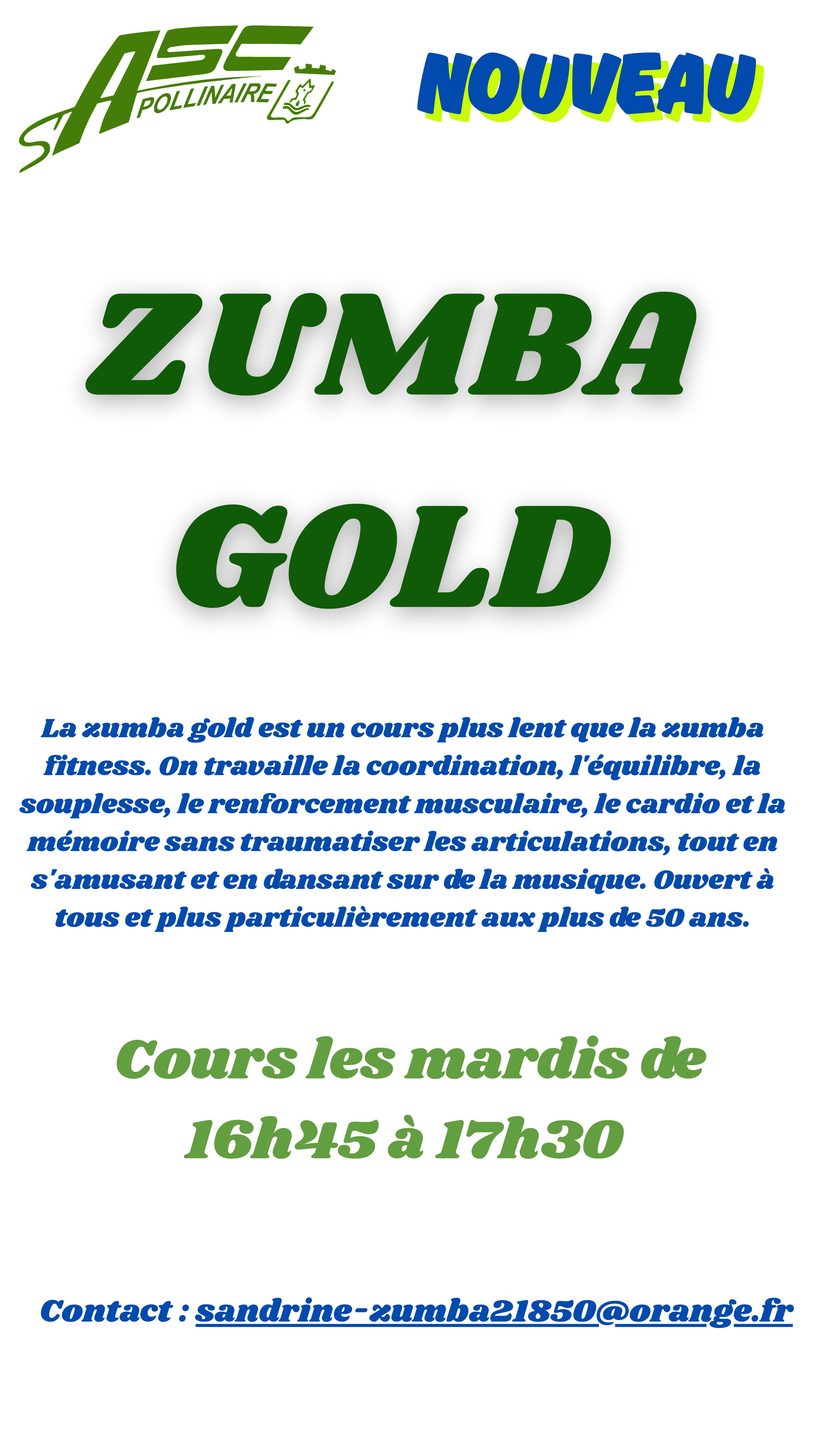 Nouveau : Section Zumba Gold Gérald Catégorie : Actualités 26 Août 2025 Clics : 1544 Rating: ( 0 Notation ) Veuillez voter Vote 1 Vote 2 Vote 3 Vote 4 Vote 5 L'ASC vous propose une nouvelle activité adultes. Précédent Suivant