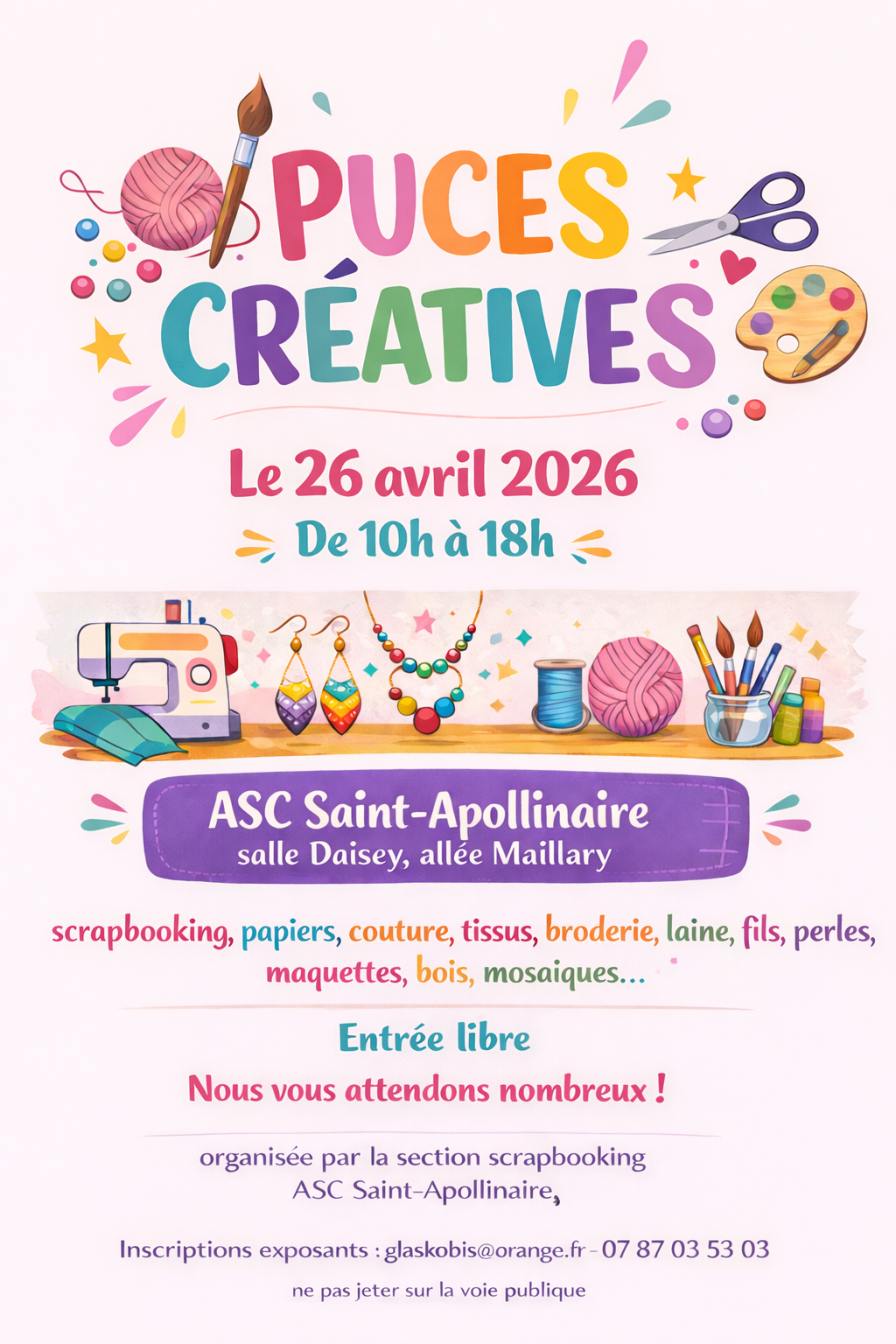 Les Puces créatives Gérald Catégorie : Actualités 19 Mars 2026 Clics : 16 Rating: ( 0 Notation ) Veuillez voter Vote 1 Vote 2 Vote 3 Vote 4 Vote 5 + Suivant