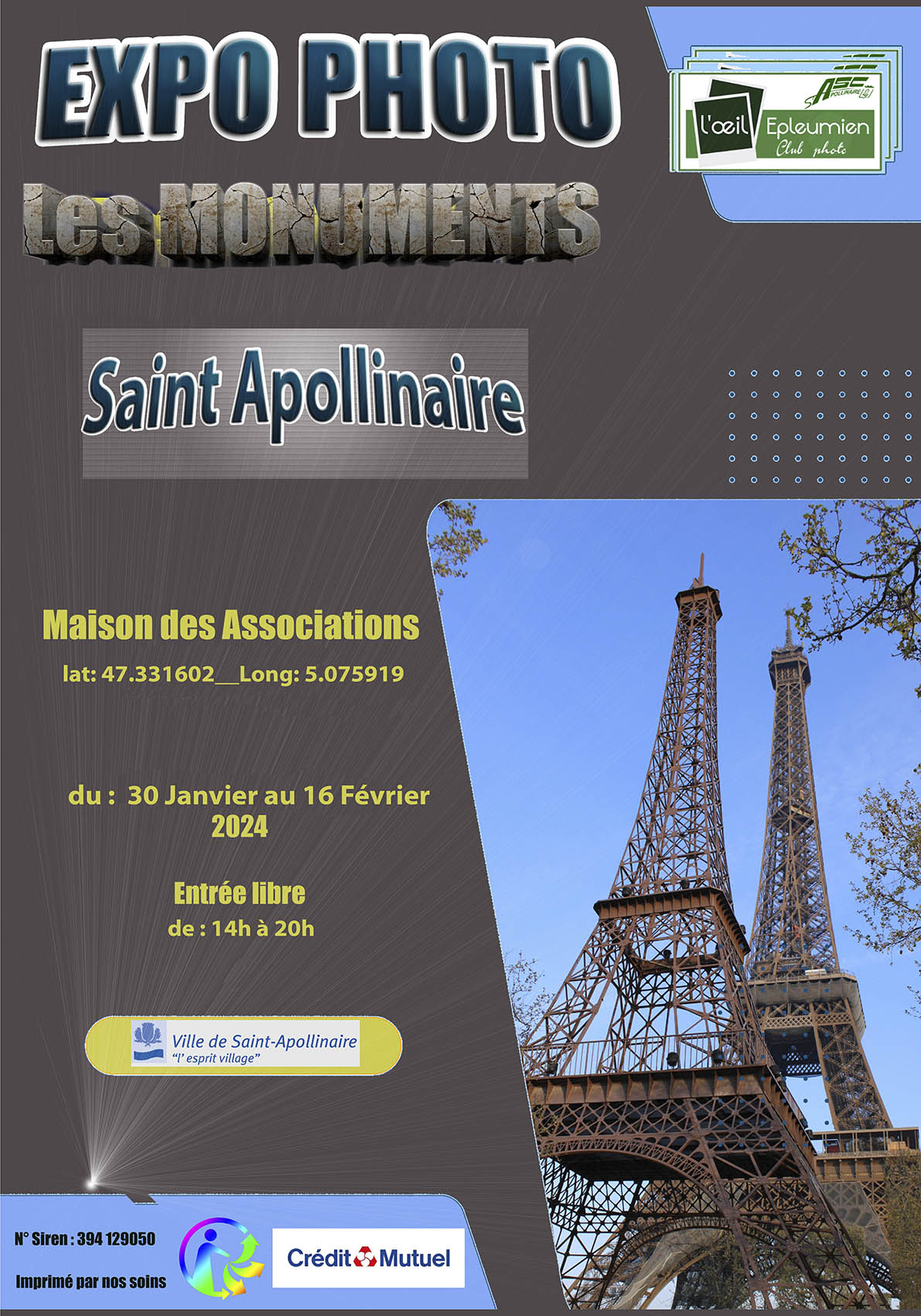 La section photo a l'honneur de vous inviter à son exposition photo à la maison des associations